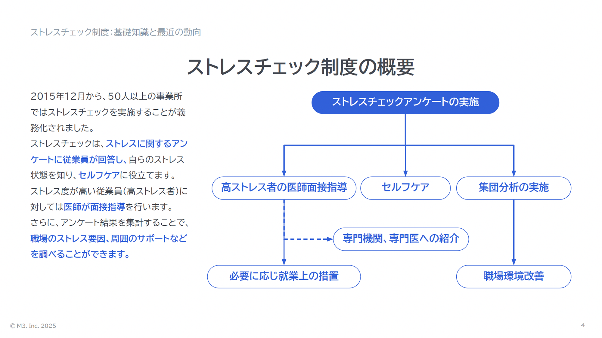 本資料では、産業医監修のもと、ストレスチェック制度の基礎知識から最近の動向、健康経営につなげるストレスチェック、さらにはストレスチェックの実践的な活用法について解説させていただきます。